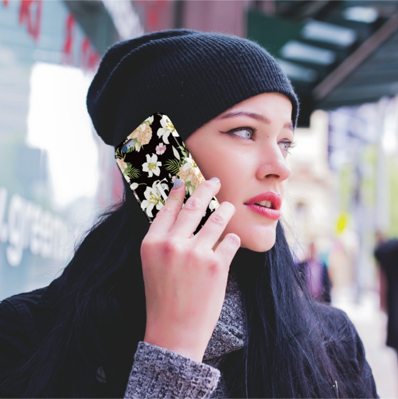 側面と表面に印刷されており、軽量で耐衝撃性、耐熱性に優れたプラスチック製のスマホハードケースです。