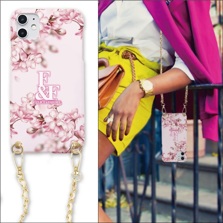 スマホショルダー スマホ ロングチェーン チェーン ショルダー ハードケース iPhone ストラップ 肩紐 金具 iPhoneケース ハードケース ケース ブランド ピンク 花柄 オシャレ 新機種 iPhone スマホ ロゴ 花びら 桜 サクラ