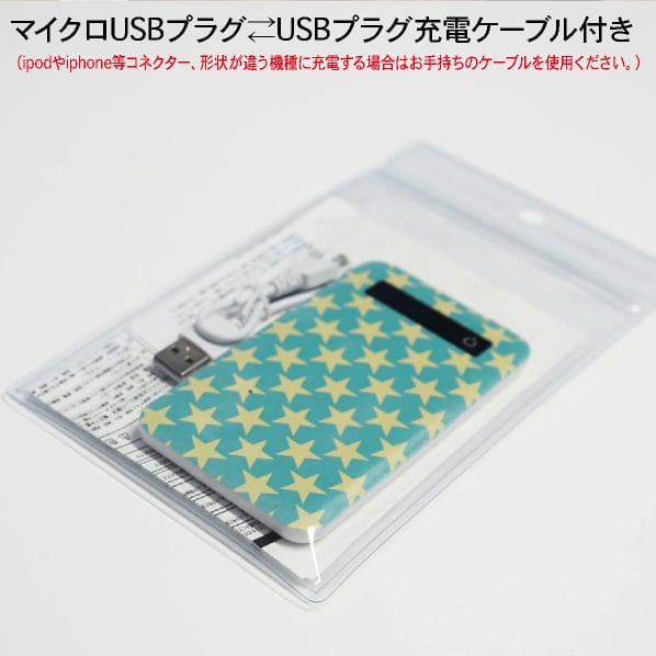 (ipodやiphone等コネクター、形状が違う機種に充電する場合はお手持ちのケーブルを使用ください。)
