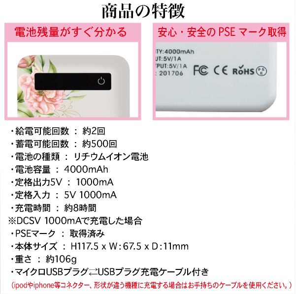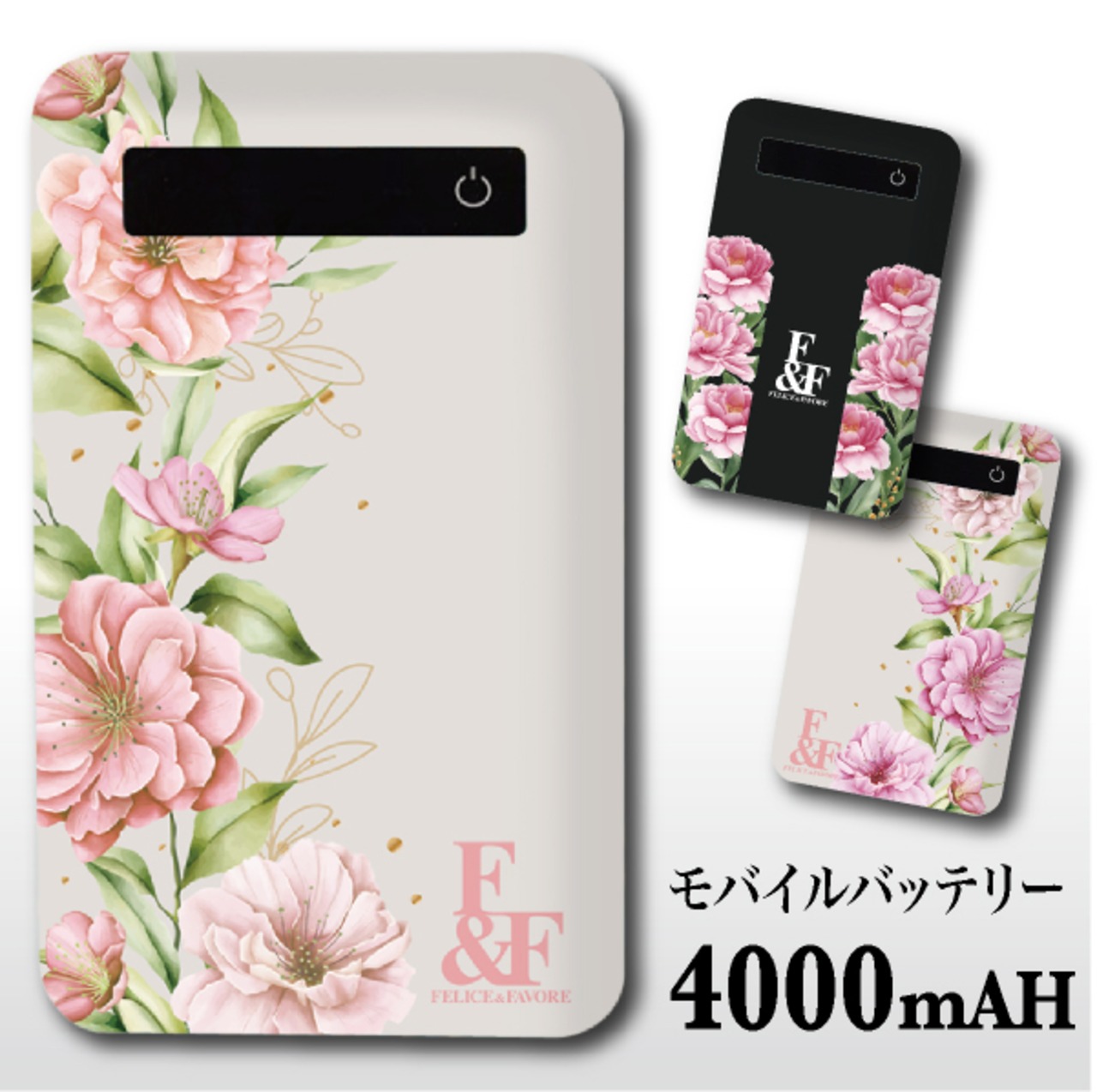 モバイルバッテリー 4000mah 充電器 スマホ iPhone Android 花 花柄 フラワー オシャレ かわいい プレゼント ギフト 防災 バッテリー モバイル